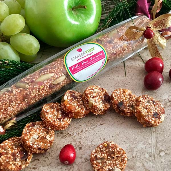 Rollo RAW navideño de frutos deshidratados, nueces, naranja y especias asiáticas